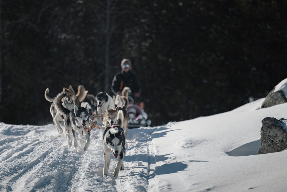 Momento para cambiar las botas por nuevas experiencias: trineo de perros (mushing), moto de nieve o tirolina. Las opciones permiten combinar adrenalina y descanso.
